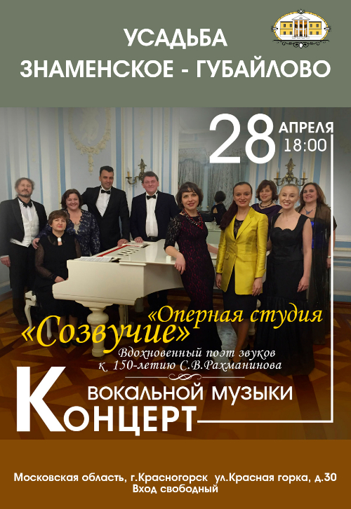 Концерт вокальной музыки «Вдохновенный поэт звуков» к 150-летию С.В.Рахманинова Ведущего творческого коллектива г. Москвы, «Оперная студия «Созвучие»