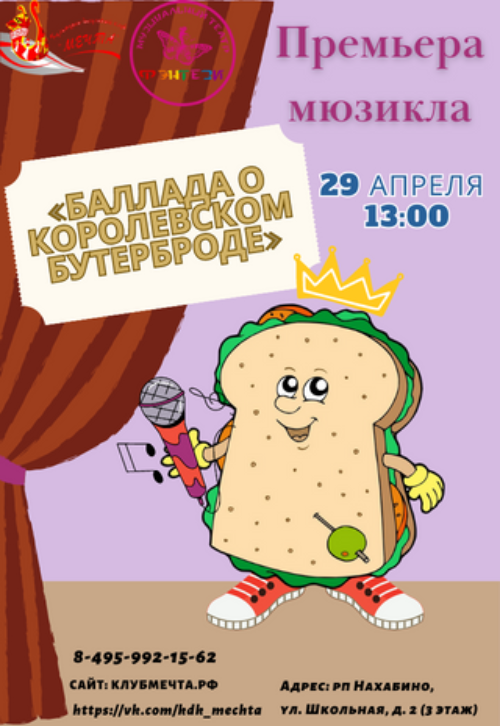 29.04.2023 13:00 – Премьера мюзикла «Баллада о королевском бутерброде» от музыкального театра «Фэнтези»