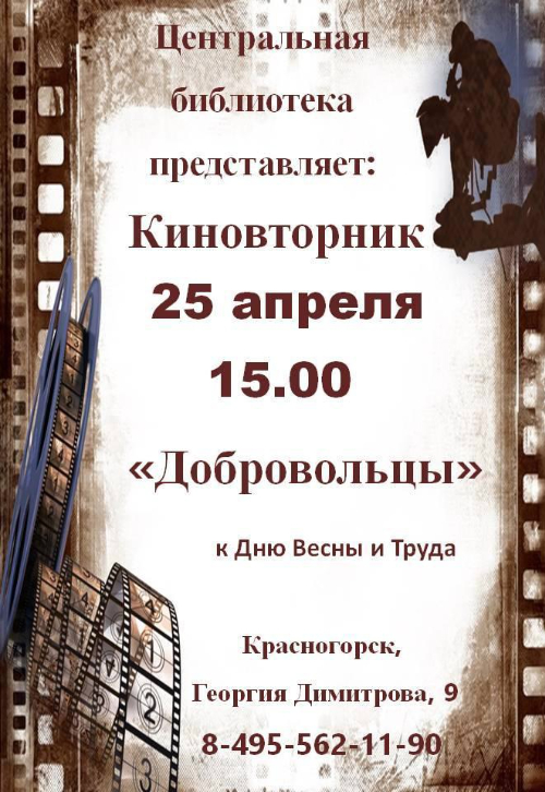 Центральная библиотека приглашает 25 апреля в 15.00 на кинопоказ художественного фильма "Добровольцы".