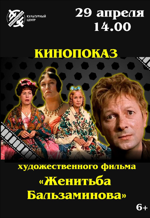 29 апреля в рамках культурно-просветительского проекта "КиноМультПросвет" пр поддержке состоится кинопоказ художественного фильма "Женитьба Бальзаминова", снятый по мотивам комедии А.Н. Островского.
