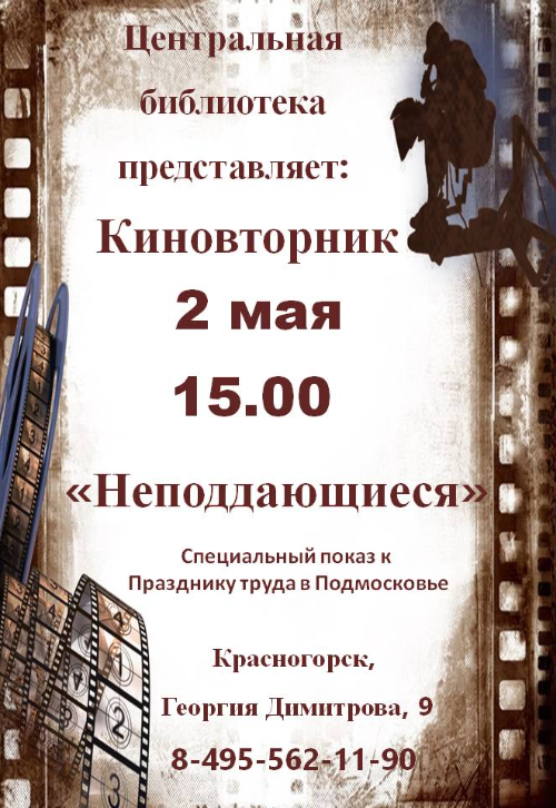 Друзья! ЦЕНТРАЛЬНАЯ БИБЛИОТЕКА приглашает... ❗❗15:00 Киновторник 2 мая "Неподдающиеся" Специальный показ к Празднику труда в Подмосковья. ❗Вход свободный❗