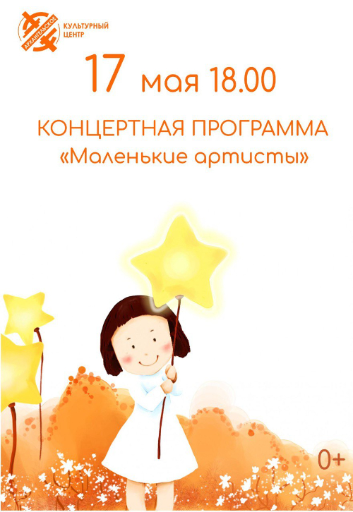 17 мая самые юные участники детских творческих коллективов культурного центра "Архангельское" покажут свои номера и выступления. В концертной программе "Маленькие артисты" примут участие: студия эстрадного вокала «Фейерверк», студия «Гимнастика», студия «Поинг». Улыбки, радость, смех наполнят зрительный зал!