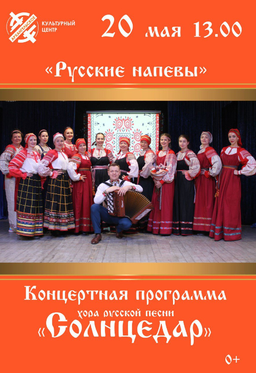20 мая хор русской песни «Солнцедар» ждёт своих слушателей на концертной программе "Русские напевы", которая состоится в культурном центре «Архангельское».