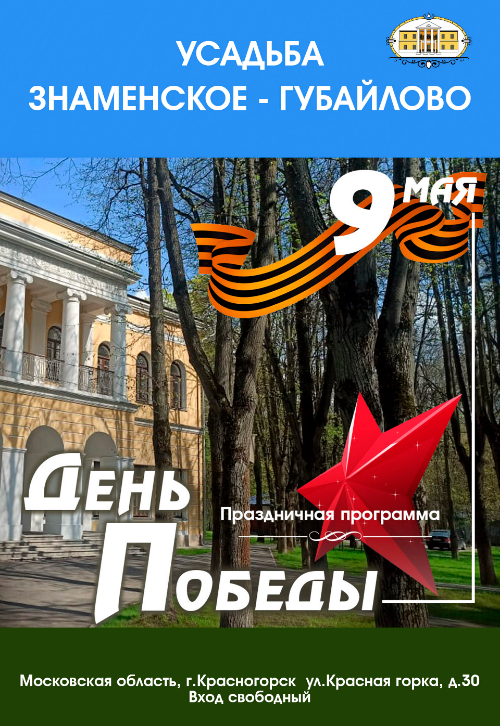 Культурно--выставочный комплекс "Знаменское-Губайлово" приглашает вас 9 мая на мероприятия, посвященные празднованию Дня Победы.