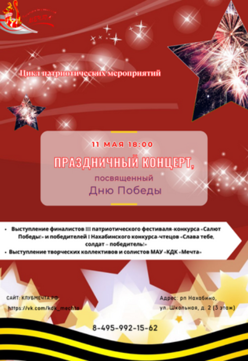 11.05.2023 18:00 – Праздничный концерт, посвященный ДНЮ ПОБЕДЫ!
