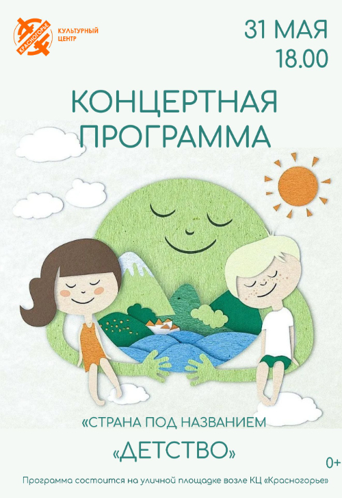 Приглашаем всех посетить концертную программу «Страна под названием детство», которая состоится 31 мая в 18:00 на уличной площадке возле КЦ «Красногорье».