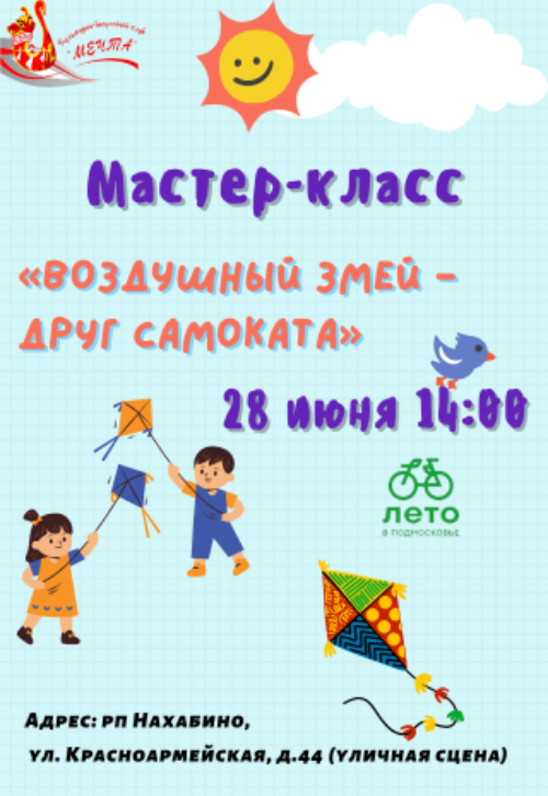 28.06.2023 14.00 – Мастер-класс «Воздушный змей - друг самоката»