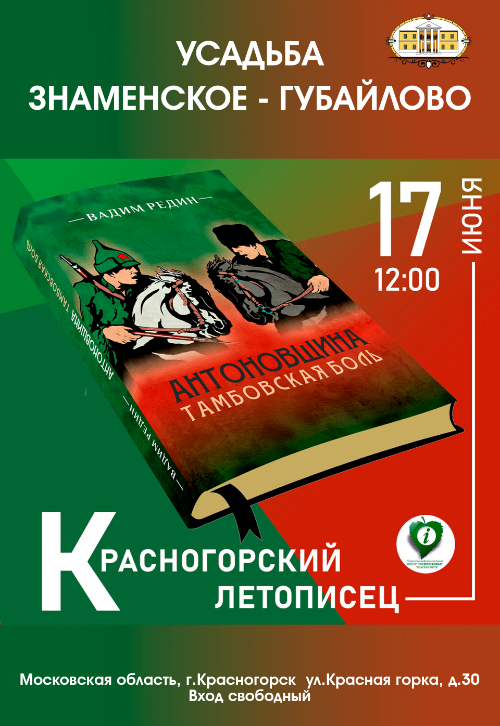 17 июня в 12:00 состоится встреча историко - краеведческого общества «Красногорский Летописец» с Вадимом Алексеевичем Рединым - писателем, актёром, краеведом.