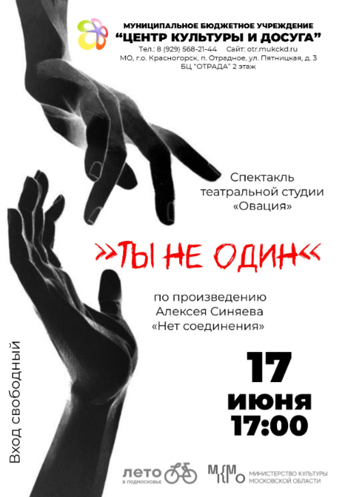Театральная студия «Овация» Центра культуры и досуга приглашает на спектакль «Ты не один»!