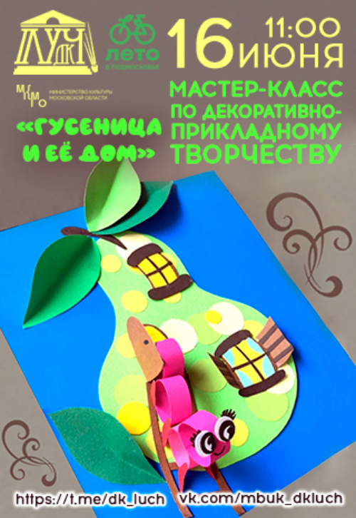Превращение гусеницы в бабочку невероятно, но гусеницы тоже сами по себе удивительны! Оказывается, что гусеницы очень много едят. Гусеницы начинают есть с того момента, как они выходят из яйца. До окукливания гусеница может быть в 100 раз больше чем, когда она появилась из яйца. А где же живут гусеницы? Их часто можно найти в саду или на заднем дворе, где они живут на нижней стороне листьев растений-хозяев, чтобы прятаться от хищников. На мастер-классе по декоративно –прикладному творчеству, который состоится в Доме культуры «Луч», в рамках проекта «Культурные каникулы в Подмосковье» все желающие смогут пофантазировать на тему «Гусеница и её дом» и узнать интересные факты про необыкновенное насекомое.