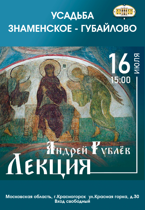 ультурно--выставочный комплекс "Знаменское-Губайлово" приглашает вас на лекцию "Андрей Рублёв", которая состоится 16 июля в 15:00 в Главном доме Усадьбы.
