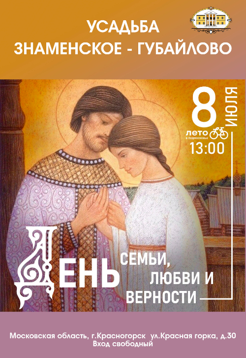 Дорогие друзья! 8 июля в 13:00 приглашаем вас на замечательный праздник - День семьи, любви и верности в Усадьбу Знаменское-Губайлово.