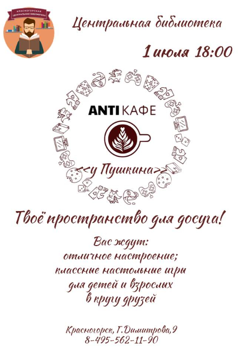 АнтиКафе «У Пушкина» продолжает свою работу в Центральной библиотеке!