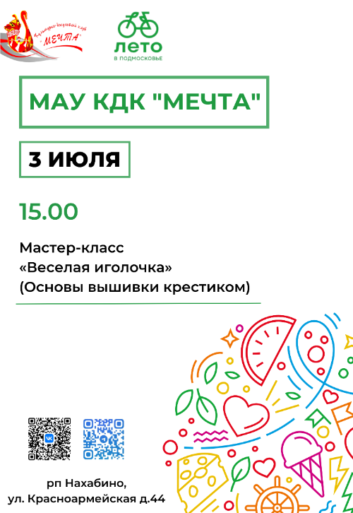 03.07.2023 15.00 – Мастер-класс «Веселая иголочка». Основы вышивки крестиком.