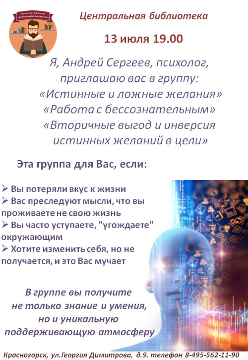 Друзья, очередная встреча с психологом Андреем Сергеевым состоится