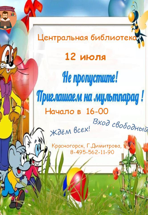 12 июля в 14.00 мультпарад в ЦЕНТРАЛЬНОЙ БИБЛИОТЕКЕ .