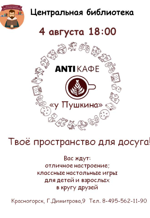 Друзья! АнтиКафе «У Пушкина» продолжает свою работу в Центральной библиотеке!