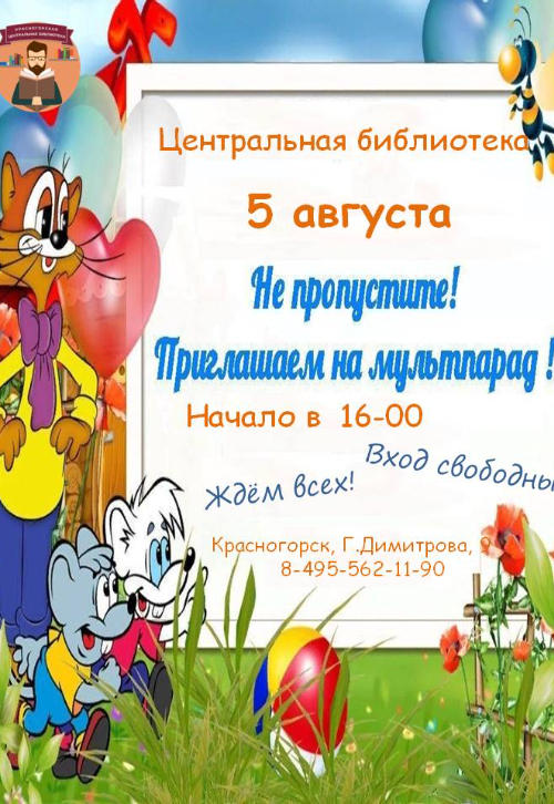 5 августа в 16.00 мультпарад в ЦЕНТРАЛЬНОЙ БИБЛИОТЕКЕ .